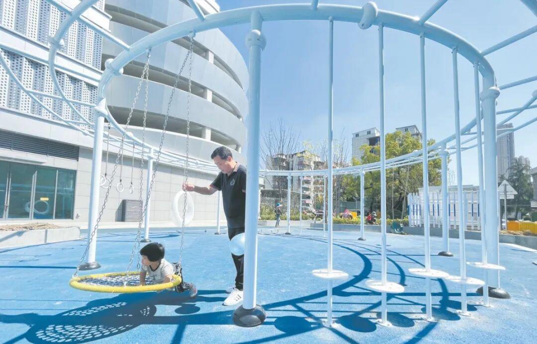 漢陽區(qū)知音東苑小區(qū)停車樓一側(cè)建有兒童娛樂區(qū),成為小朋友的快樂天地。記者冷靖華 攝