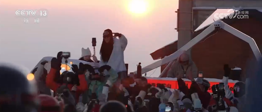 每當(dāng)傍晚,山頂上還有很多雪友喜愛(ài)的“夕陽(yáng)派對(duì)”,在太陽(yáng)快落山的時(shí)候,穿著五顏六色滑雪服的雪友們會(huì)從四面八方匯聚到雪場(chǎng)的山頂上,大家一起看橙紅色的夕陽(yáng)慢慢落下,跟著現(xiàn)場(chǎng)音樂(lè)韻律,盡情歡呼跳躍,享受這份活力。