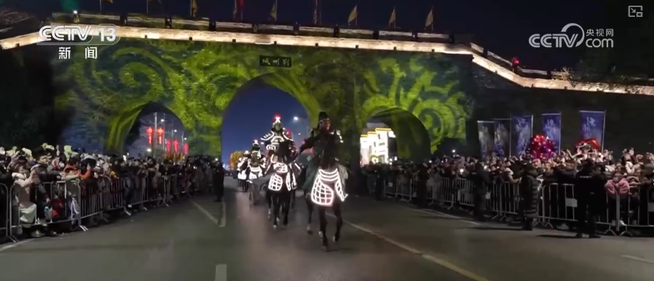 更有2026架無(wú)人機(jī)騰空而起,勾勒出“萬(wàn)馬奔騰”“鳳凰展翅”光影長(zhǎng)卷,讓游客驚嘆。還有為古城墻披上斑斕外衣的荊風(fēng)楚韻燈光秀,讓大家賞心悅目。光影流轉(zhuǎn)間,放佛歷史與現(xiàn)代隔空對(duì)話。