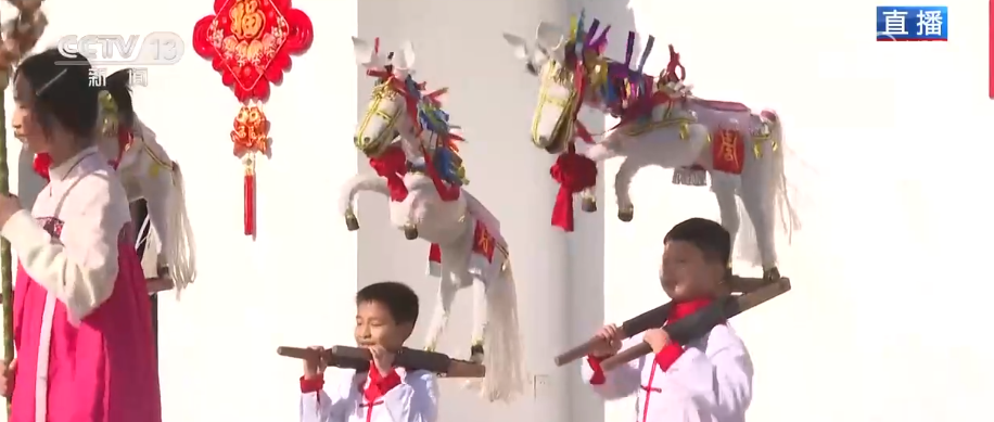 逛得盡興,更有好戲看!市集舞臺(tái)區(qū)的非遺民俗表演,表演者都是小朋友。首先登場(chǎng)的是背馬表演,它是國(guó)家級(jí)非遺“河上龍燈勝會(huì)”的重要組成部分。孩子們身上背著裝飾精美的“竹馬”,踏著鼓點(diǎn)昂首前行,它們也是龍燈隊(duì)伍的“開(kāi)路先鋒”,瞬間把熱鬧氛圍給拉滿。