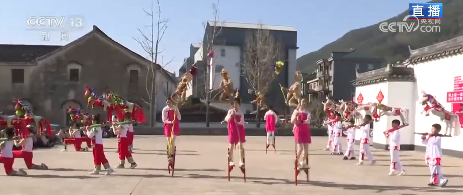 旁邊進(jìn)行的是踩高蹺表演,和北方高蹺相比,河上鎮(zhèn)高蹺的高度并不算高,但卻格外講究“鮮”跟“活”。小朋友們踩著高蹺,時(shí)而轉(zhuǎn)身,時(shí)而跳躍,動(dòng)作靈動(dòng)又驚險(xiǎn),這正是傳統(tǒng)文化傳承中最動(dòng)人的模樣。