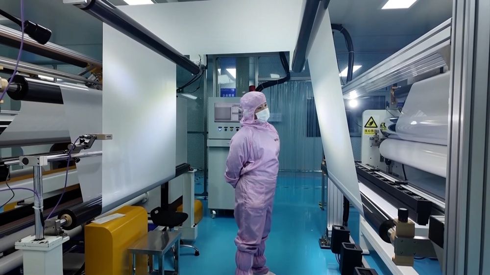 在園區(qū)內(nèi)的湖南壹鑫科技有限公司無塵生產(chǎn)車間,光學(xué)薄膜自動(dòng)化生產(chǎn)線正滿負(fù)荷運(yùn)轉(zhuǎn)。