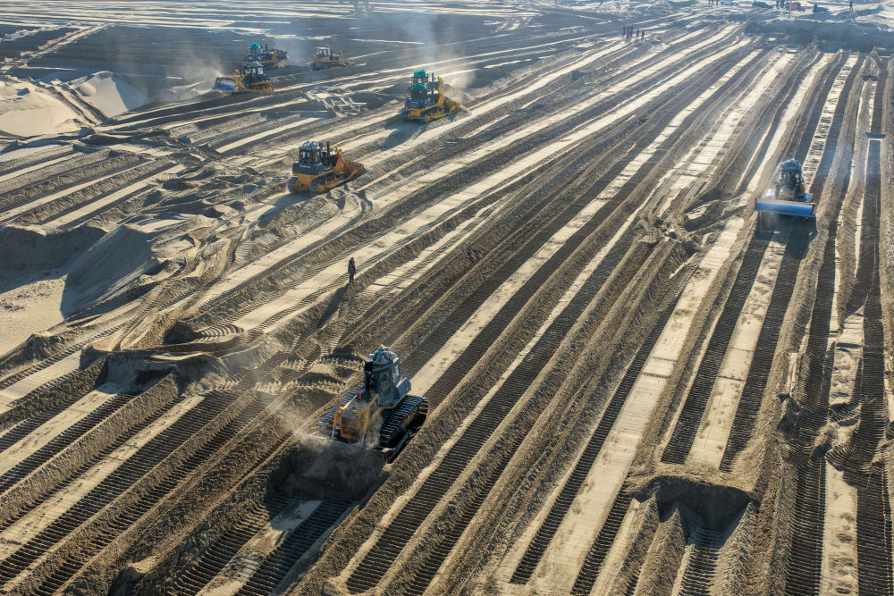 冬季的沙漠進(jìn)入“休眠期”,沙塵天氣頻率降至全年最低,沙丘移動(dòng)速度趨于穩(wěn)定,為大型機(jī)械平整沙地作業(yè)創(chuàng)造了穩(wěn)定條件,也是從源頭切斷春季風(fēng)沙蔓延路徑的關(guān)鍵窗口期。