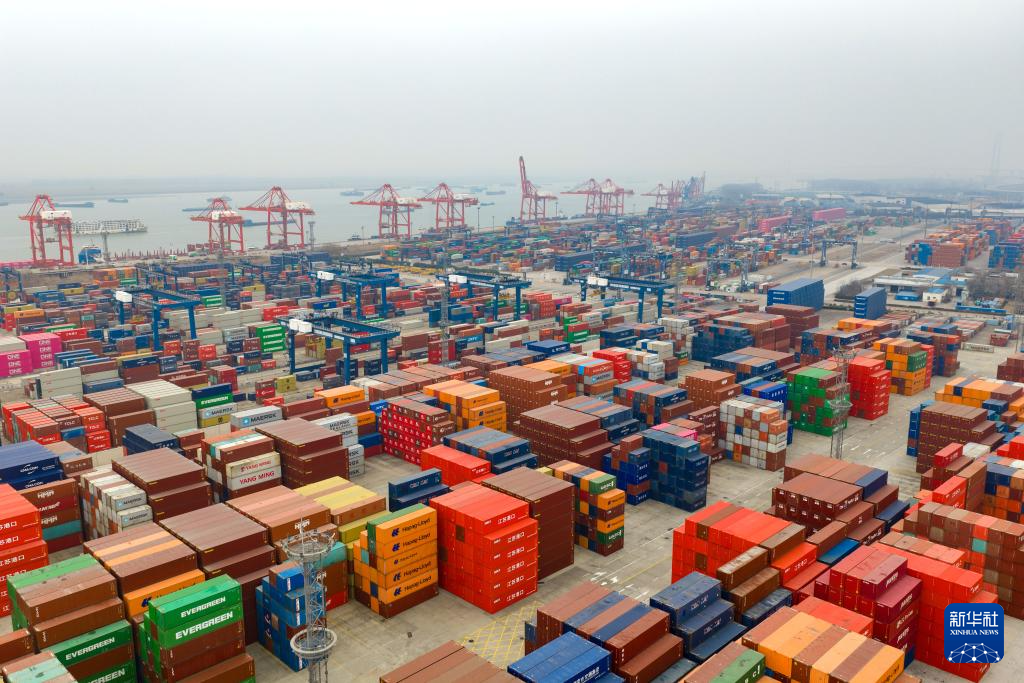 1月18日拍攝的江蘇省港口集團(tuán)南京港龍?zhí)都b箱碼頭(無(wú)人機(jī)照片)。新華社發(fā)(楊素平攝)