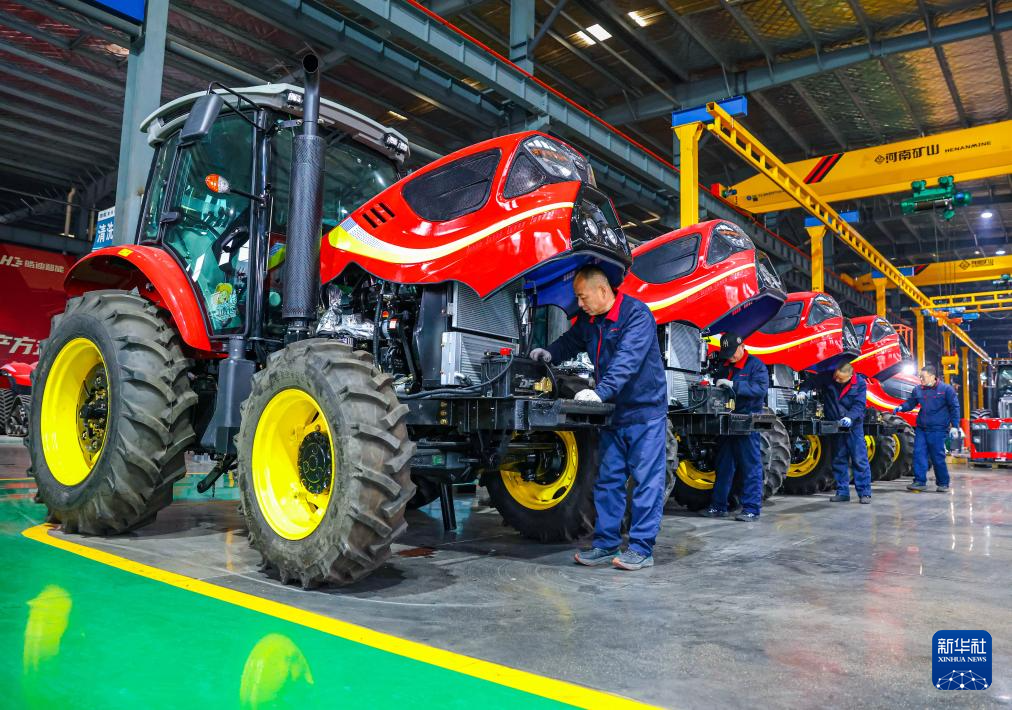 1月19日,在江蘇省江都高新技術(shù)產(chǎn)業(yè)開(kāi)發(fā)區(qū)的金世紀(jì)(江蘇)智能科技有限公司,工人對(duì)即將出售的拖拉機(jī)進(jìn)行檢查。新華社發(fā)(任飛攝)