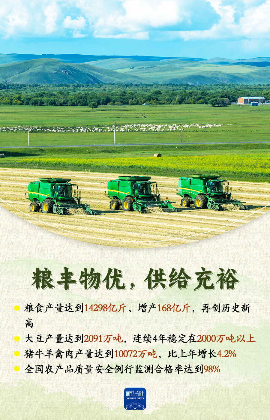 國務(wù)院新聞辦公室22日舉行新聞發(fā)布會,農(nóng)業(yè)農(nóng)村部相關(guān)負(fù)責(zé)人介紹加快農(nóng)業(yè)農(nóng)村現(xiàn)代化,扎實推進鄉(xiāng)村全面振興有關(guān)情況。2025年,我國農(nóng)業(yè)農(nóng)村發(fā)展保持穩(wěn)中有進、穩(wěn)中向好的勢頭,為推動經(jīng)濟社會高質(zhì)量發(fā)展提供了基礎(chǔ)支撐。跟隨這組海報,一起來看。