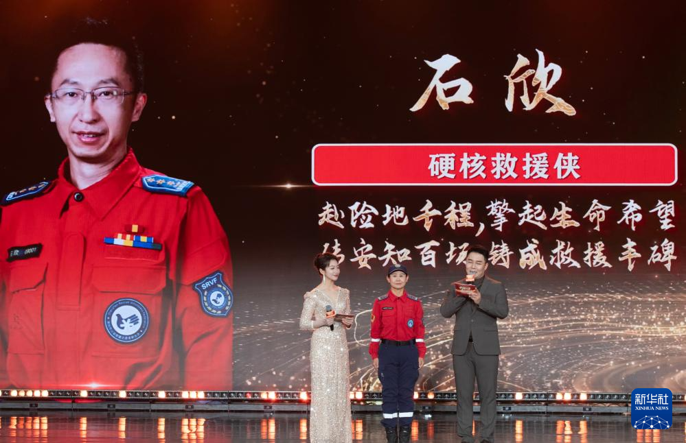 1月28日,由新華社主辦的“中國網(wǎng)事·感動(dòng)2025”公益盛典暨年度頒獎(jiǎng)典禮在北京舉行,活動(dòng)揭曉“中國網(wǎng)事·感動(dòng)2025”十大年度網(wǎng)絡(luò)人物。這是“硬核救援俠”石欣的代表(中)出席頒獎(jiǎng)典禮。新華社記者 李安 攝