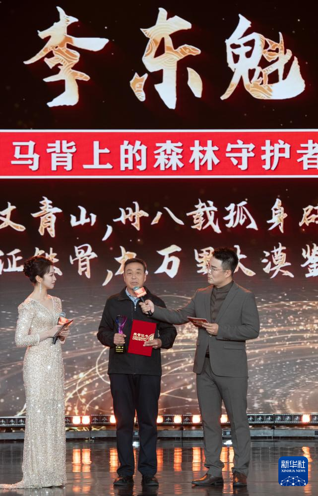1月28日,由新華社主辦的“中國網(wǎng)事·感動(dòng)2025”公益盛典暨年度頒獎(jiǎng)典禮在北京舉行,活動(dòng)揭曉“中國網(wǎng)事·感動(dòng)2025”十大年度網(wǎng)絡(luò)人物。這是“馬背上的森林守護(hù)者”李東魁(中)出席頒獎(jiǎng)典禮。新華社記者 李安 攝