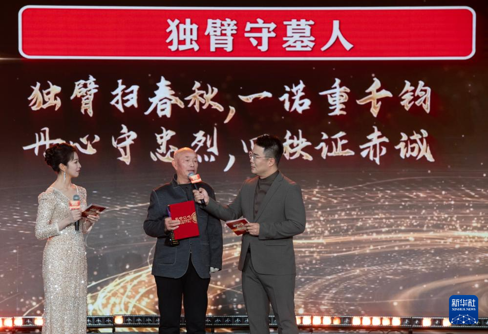 1月28日,由新華社主辦的“中國網(wǎng)事·感動(dòng)2025”公益盛典暨年度頒獎(jiǎng)典禮在北京舉行,活動(dòng)揭曉“中國網(wǎng)事·感動(dòng)2025”十大年度網(wǎng)絡(luò)人物。這是“獨(dú)臂守墓人”蔡恩坤(中)出席頒獎(jiǎng)典禮。新華社記者 李安 攝