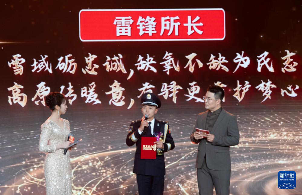 1月28日,由新華社主辦的“中國網(wǎng)事·感動(dòng)2025”公益盛典暨年度頒獎(jiǎng)典禮在北京舉行,活動(dòng)揭曉“中國網(wǎng)事·感動(dòng)2025”十大年度網(wǎng)絡(luò)人物。這是“雷鋒所長”劉鵬(中)出席頒獎(jiǎng)典禮。新華社記者 李安 攝