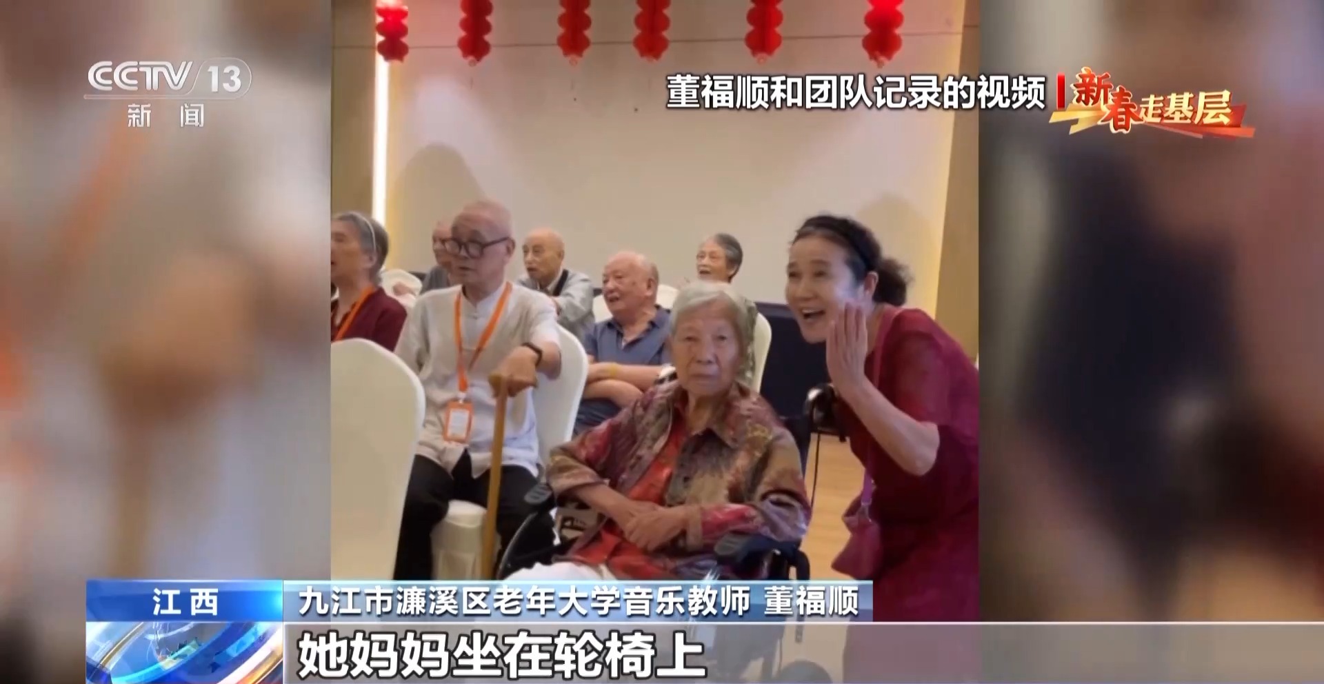 董福順在大學(xué)學(xué)的是聲樂,在九江市老年大學(xué)已經(jīng)當(dāng)了9年的音樂老師。這個(gè)臘月趁著老年大學(xué)放假,他把課堂搬進(jìn)了社區(qū)、村莊和養(yǎng)老院,免費(fèi)帶大家上課。