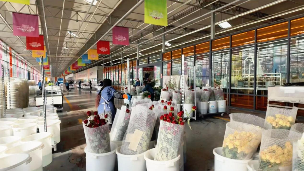 基地里,玫瑰以每40天一茬的速度茁壯生長,日產(chǎn)鮮切花達20萬枝。企業(yè)提供了超過500個就業(yè)崗位,不僅吸引本村村民,還有很多來自周邊縣區(qū)的務(wù)工者。許多像婷婷一樣的女工,在這里找到了人生第一份工作。