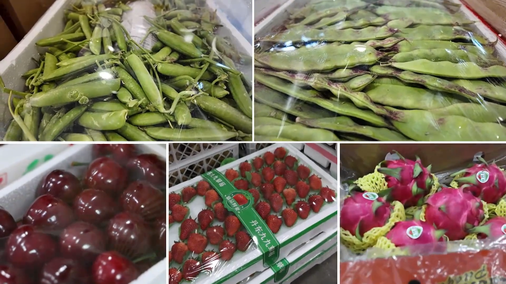 盤(pán)錦的堿地西紅柿、河蟹、大米,丹東東港的藍(lán)莓、草莓,鞍山的南果梨,從這里裝車(chē)發(fā)運(yùn),最快在24小時(shí)之內(nèi)就可以抵達(dá)南方的餐桌。