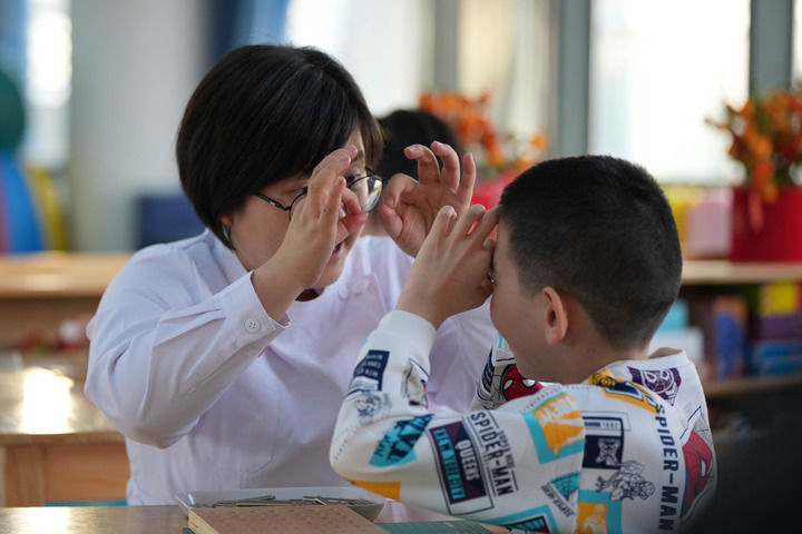 “龍龍之前無法獨立行走、不能清晰表達,甚至不能握筆。通過日復一日的康復訓練,如今他能寫自己的名字,還能背出幾首古詩?!秉S會青蹲下身子,擁著龍龍告訴記者,“這孩子性格開朗,為表演好節(jié)目,這幾天他專門對著鏡子練口型發(fā)音。”
