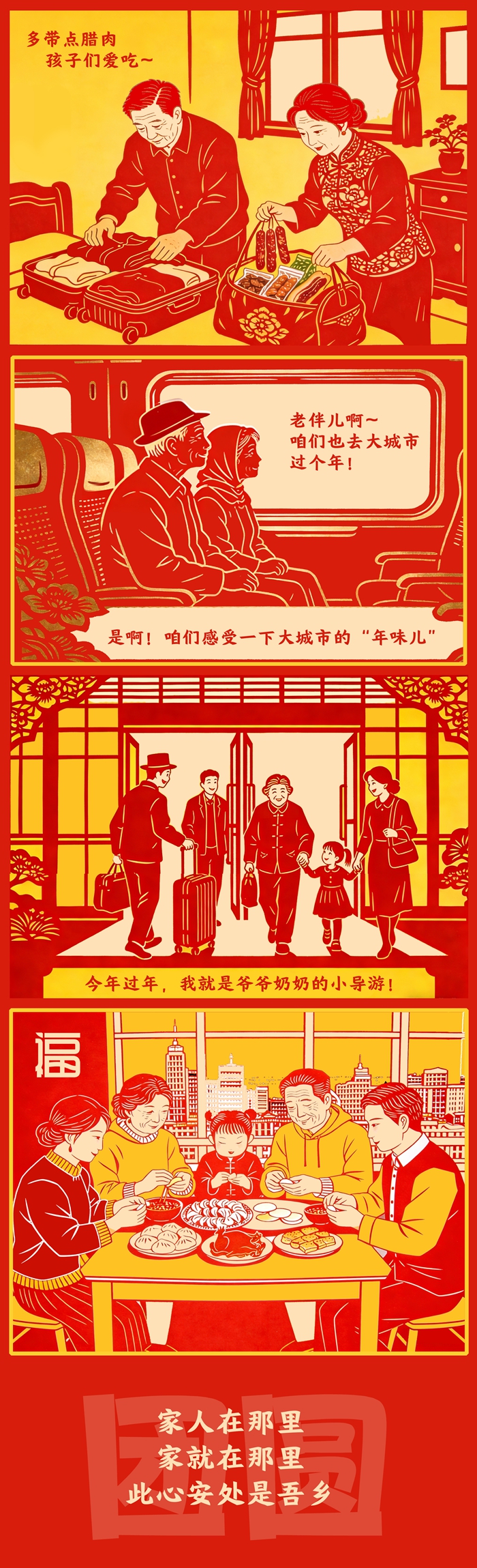 反向春運(yùn),遠(yuǎn)不止出行方式之變,它見證著中國人對“家”的理解,從故土坐標(biāo)轉(zhuǎn)向親情紐帶。變的,是團(tuán)圓路徑的智慧選擇;不變的,是對親情的永恒珍視。一個充滿活力的現(xiàn)代社會,正以其包容與溫度,為每一種真摯奔赴鋪就道路。流動中國的底色是團(tuán)圓,動力是親情,終點(diǎn)永遠(yuǎn)是家之所在。(文字/泰軒萍 漫畫/泰軒萍 編輯/喬佳新)