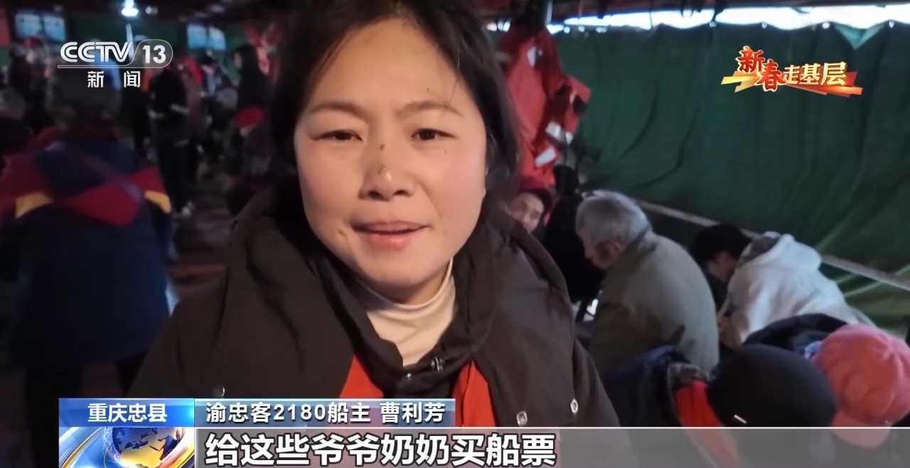 “渝忠客2180”船主 曹利芳:經(jīng)常會有好心人看了直播,然后一來就跟我說,我要給你轉錢,給這些爺爺奶奶買船票,我開始都不敢接受,上一次有個浙江的網(wǎng)友直接打了10萬元說買船票,已經(jīng)買了50多天。