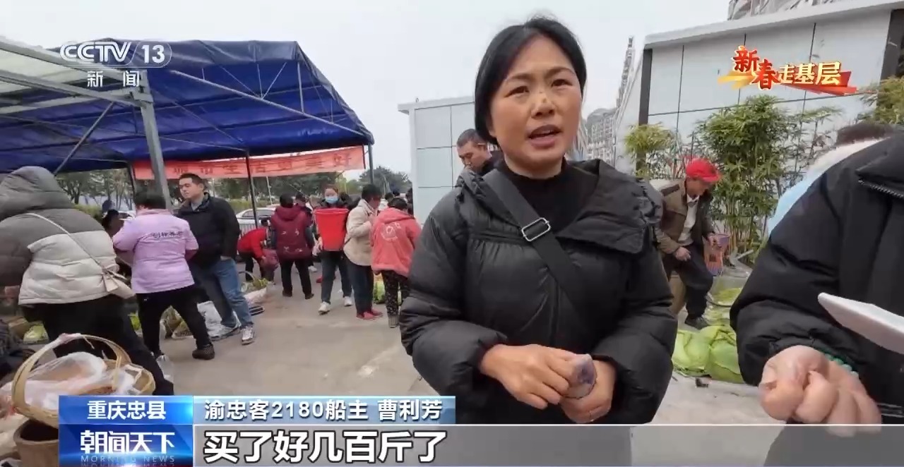 “渝忠客2180”船主 曹利芳:買了好多了,幫著買了好幾百斤了,好多網(wǎng)友他們想要吃這邊的農(nóng)家菜,所以叫我們幫他買了然后寄過去。