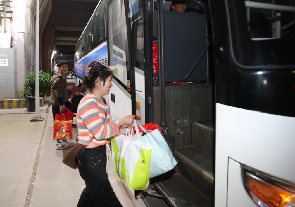 返崗人員抵達廣州南站后登上接駁大巴去往務工地。新華社發(fā)