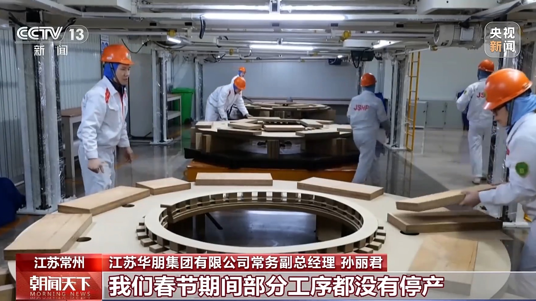 江蘇華朋集團(tuán)有限公司常務(wù)副總經(jīng)理 孫麗君:眼下,我們在手訂單已超過30億元,其中出口訂單超過20億元,現(xiàn)在訂單已經(jīng)排到年底。為了搶抓工期,確保訂單按時(shí)交付,我們春節(jié)期間部分工序都沒有停產(chǎn)。