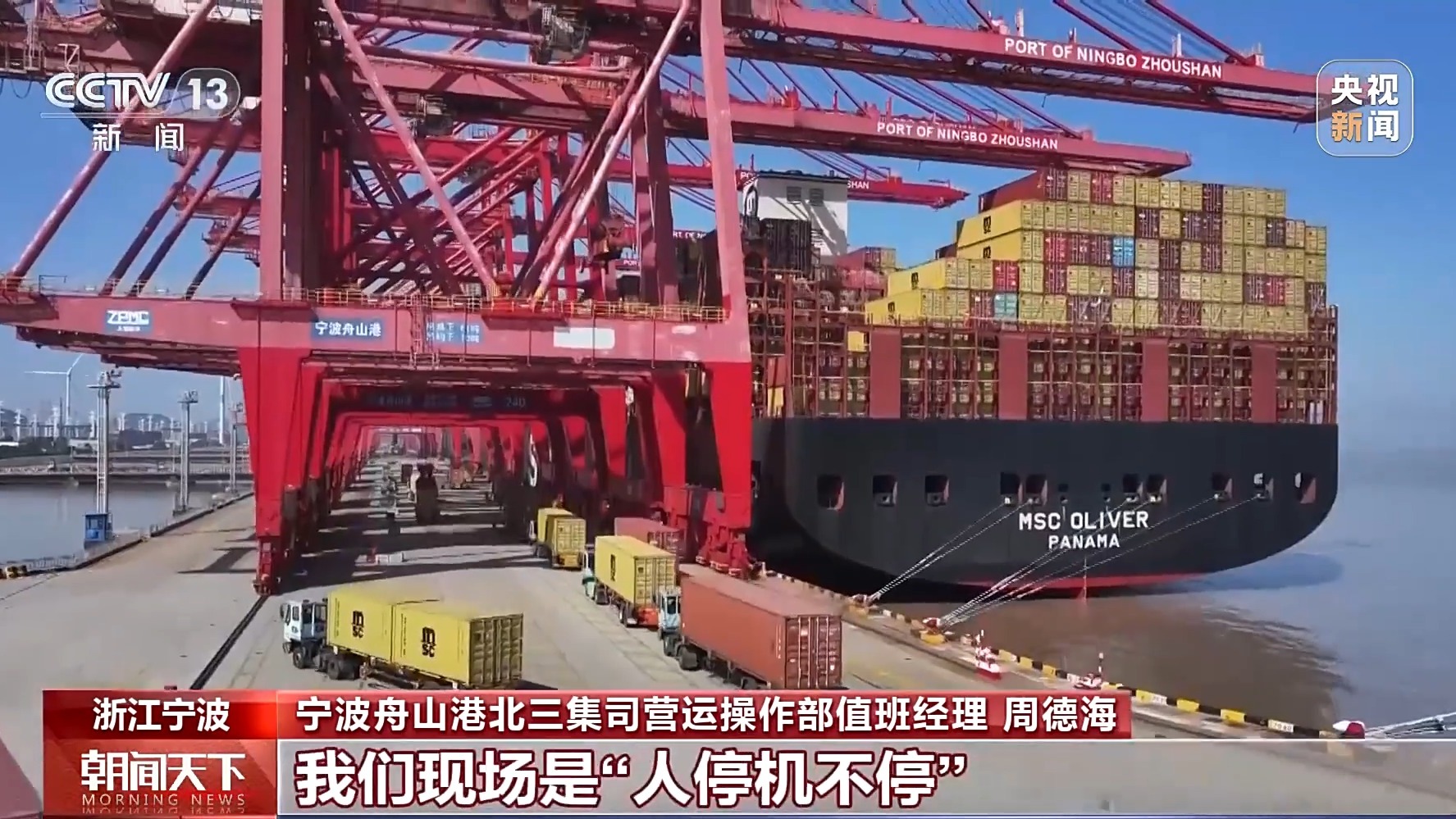 寧波舟山港北三集司營運(yùn)操作部值班經(jīng)理 周德海:這條船載重量超過了19萬噸,這回在我們港區(qū)的作業(yè)量超過了兩萬標(biāo)準(zhǔn)箱,像這樣的船型,整個(gè)春節(jié)期間還是比較多的。這幾天出口箱量增長比較明顯,我們現(xiàn)場是“人停機(jī)不?!?。節(jié)后的第一波出口集中,客戶都希望搶時(shí)間、趕船期,我們也爭分奪秒確保貨物能及時(shí)出運(yùn)。