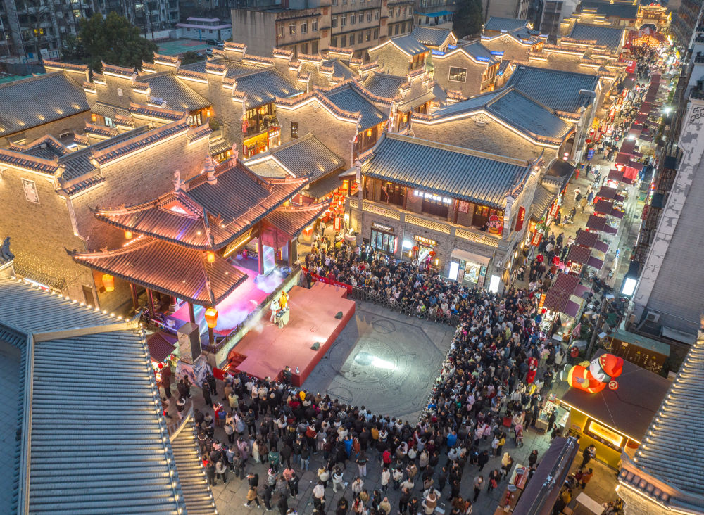 春節(jié)期間,湖北省襄陽古城管家巷的傳統(tǒng)文化表演。新華社發(fā)(楊東攝)