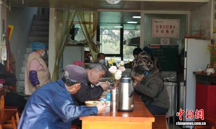 浙江海鹽,民眾在免費(fèi)素食館中用餐。海鹽縣傳媒中心供圖