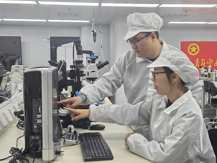 2月24日,春節(jié)假期后首個工作日。8時,江蘇金陵機械制造總廠的超凈間里,無影燈準時亮起。33歲的首席技師張雯集換上防靜電服,快步走向工作臺。這是他每天開啟“微米級挑戰(zhàn)”的固定場景。屏息凝神,手中的鍵合劈刀精準起落。幾秒后,一個誤差僅0.003毫米的“蝶形焊點”成型。