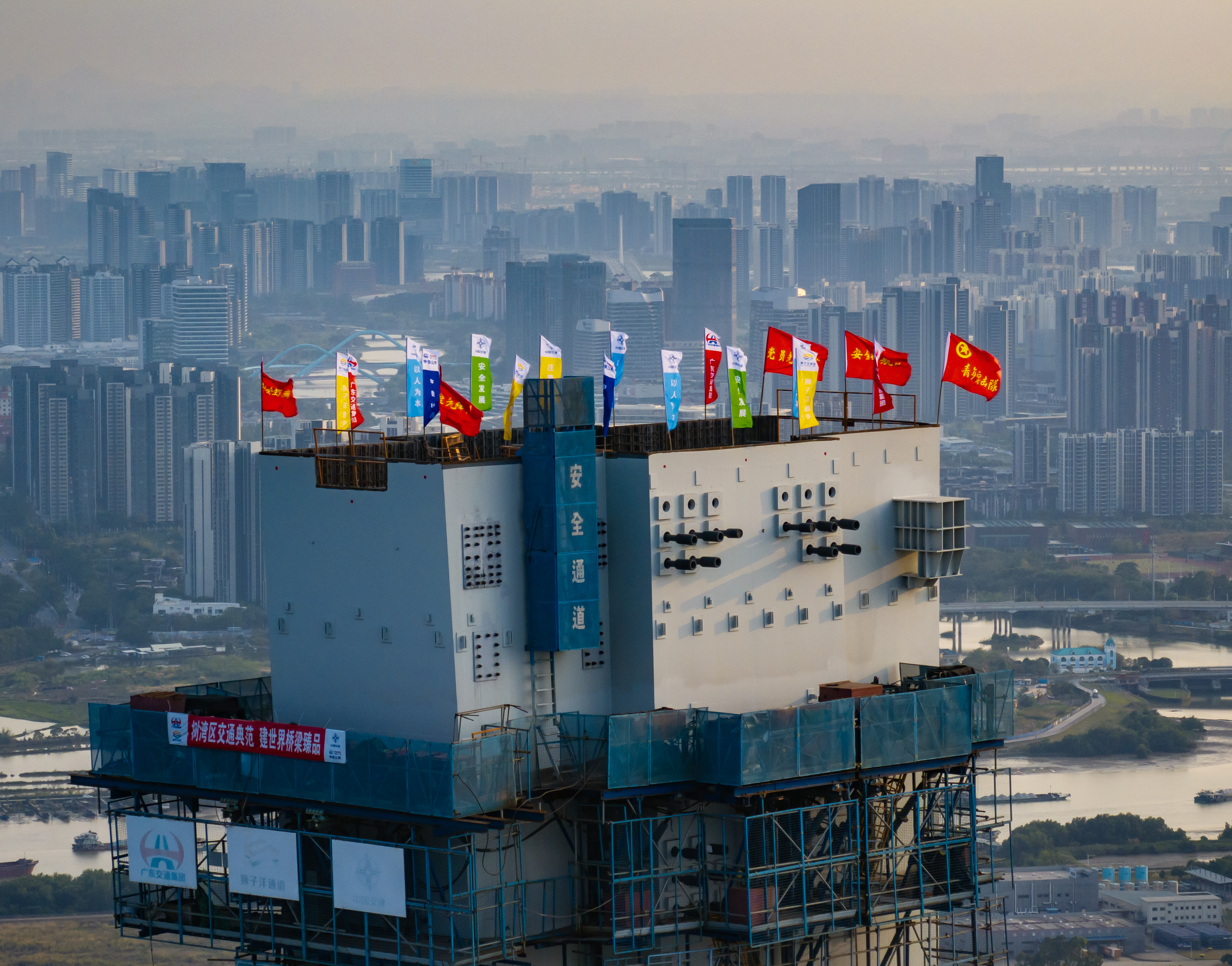 3月26日上午11時(shí),粵港澳大灣區(qū)核心樞紐工程獅子洋通道迎來(lái)重大進(jìn)展,其關(guān)鍵控制性工程——獅子洋大橋東、西主塔完成封頂,以342米的凌空高度,一舉成為珠江口第一高橋塔、世界最高雙層懸索橋主塔。