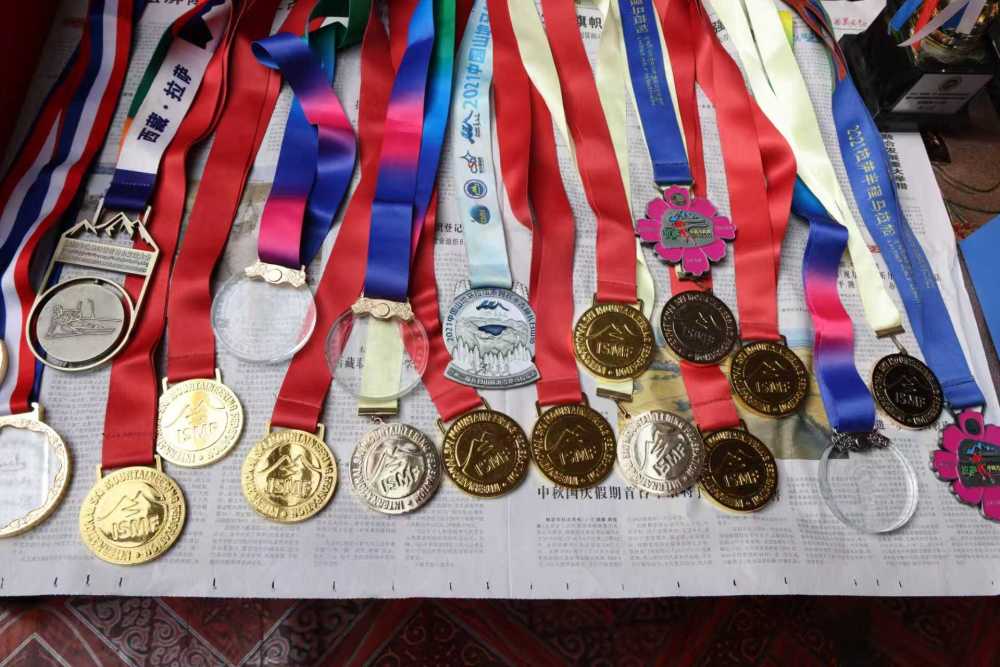 次旦玉珍家里的獎牌。普布倉決 攝