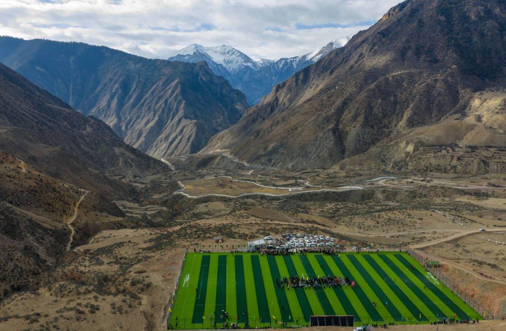 西藏昌都市洛隆縣馬利鎮(zhèn)足球場(無人機(jī)照片)。新華社記者 姜帆 攝