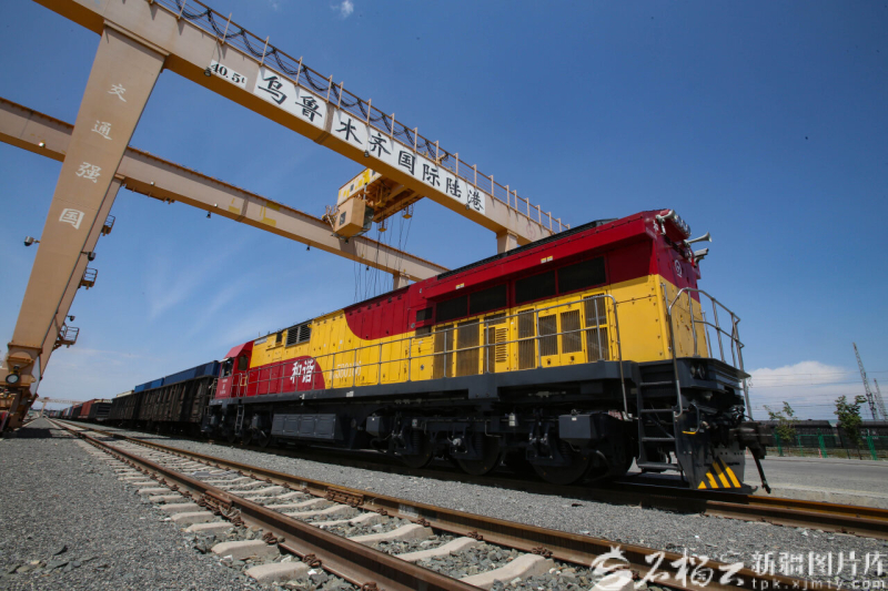 一列貨運(yùn)班列駛出烏魯木齊國際陸港區(qū)(資料圖片)。石榴云/新疆日?qǐng)?bào)記者 韓亮攝