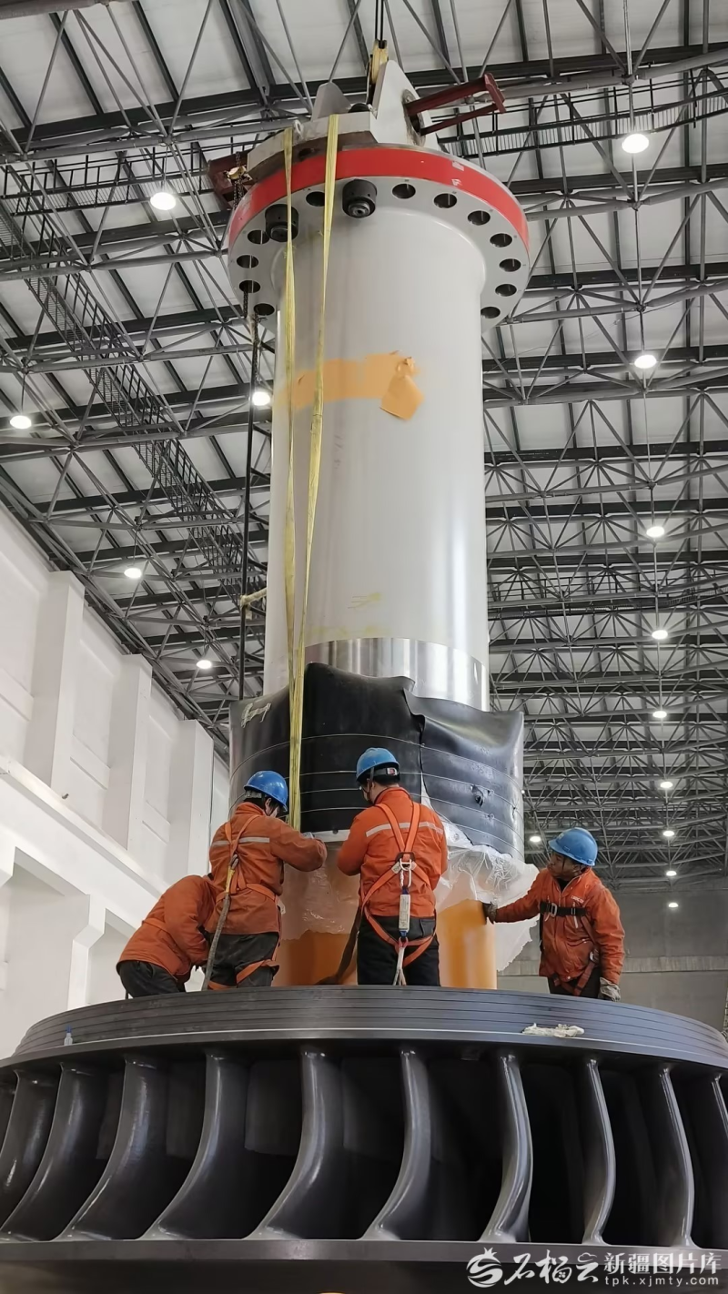 新疆大石峽水利樞紐工程發(fā)電廠房內,工作人員正在進行3號機轉輪浮動環(huán)安裝。潘生明攝