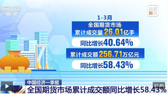 數(shù)據(jù)顯示,1-3月全國(guó)期貨市場(chǎng)累計(jì)成交量為26.01億手,累計(jì)成交額為256.71萬億元,同比分別增長(zhǎng)40.64%和58.43%。