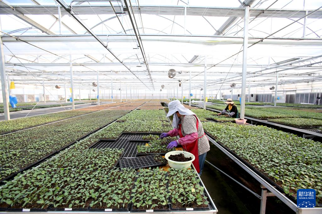 3月29日,農(nóng)戶在浙江杭州“謝徑安”農(nóng)創(chuàng)村育苗車間工作。新華社記者 程麗 攝