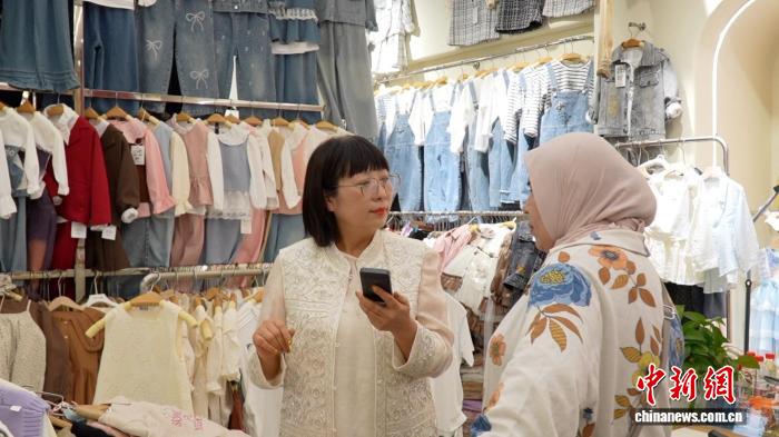 一大早,在織里鎮(zhèn)沿街的一家童裝店內(nèi),負責人文曉莉正忙著接待兩位來自烏茲別克斯坦的客商。雙方圍繞童裝款式、價格、訂單細節(jié)展開細致洽談。