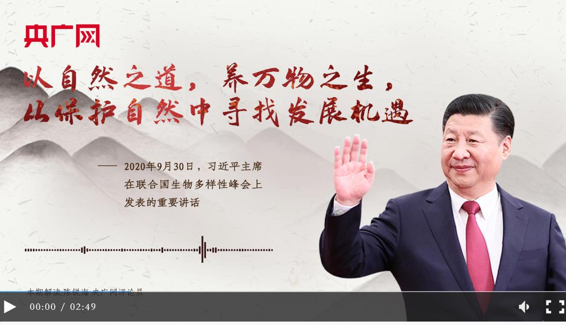 這段話出自2020年9月30日習(xí)近平主席在聯(lián)合國生物多樣性峰會上發(fā)表的重要講話。
