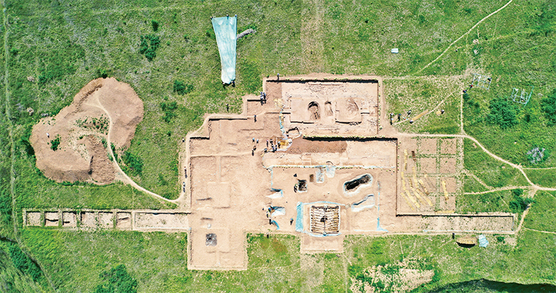 甘肅省隴南市禮縣一帶是早期秦文化發(fā)祥地,被譽(yù)為“秦人故里”。四角坪遺址位于禮縣四格子山頂部,是目前已發(fā)現(xiàn)的罕見的規(guī)模宏大、格局規(guī)整的秦代大型建筑群,體現(xiàn)了中國(guó)古代統(tǒng)一國(guó)家形成初期的風(fēng)格和氣魄,被評(píng)為2023年度全國(guó)十大考古新發(fā)現(xiàn)之一。圖為2022年6月10日拍攝的考古發(fā)掘現(xiàn)場(chǎng)。 新華社記者 陳斌/攝