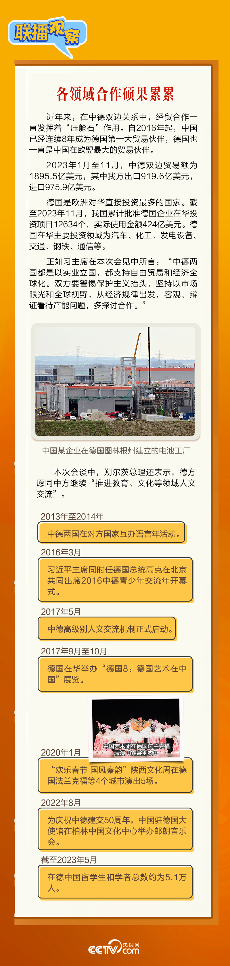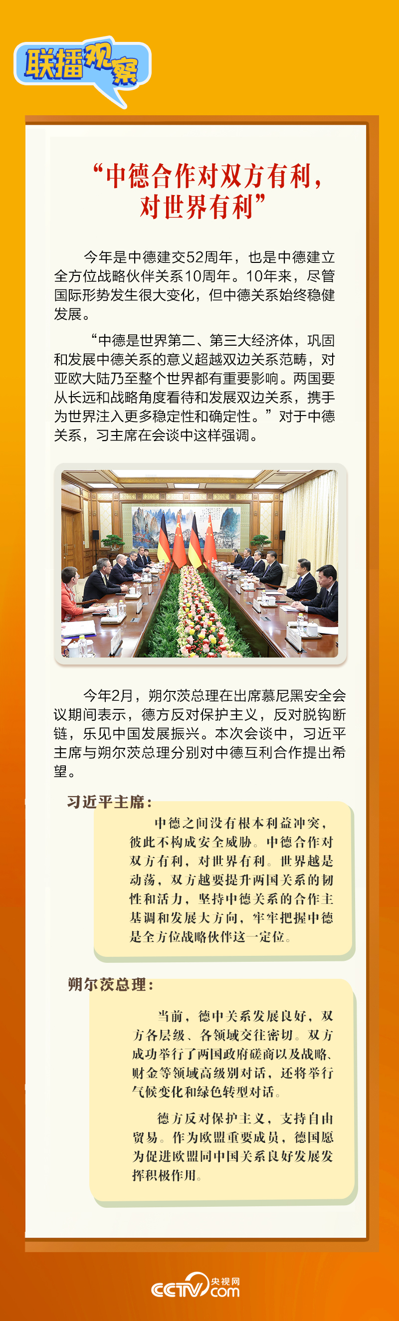 4月16日上午,習近平主席在北京釣魚臺國賓館會見朔爾茨總理。會見中,習主席強調(diào),要“牢牢把握中德是全方位戰(zhàn)略伙伴這一定位”。中德建立全方位戰(zhàn)略伙伴關系10年來,兩國如何共同發(fā)展,相互成就?央視網(wǎng)《聯(lián)播觀察》帶您了解。