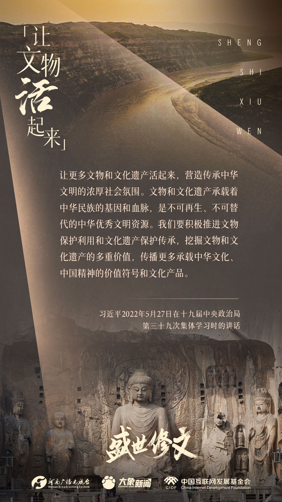 河南廣播電視臺大象新聞大型融媒體報道《盛世修文》,深入闡釋習(xí)近平文化思想,著力推進(jìn)黨的創(chuàng)新理論飛入尋常百姓家。