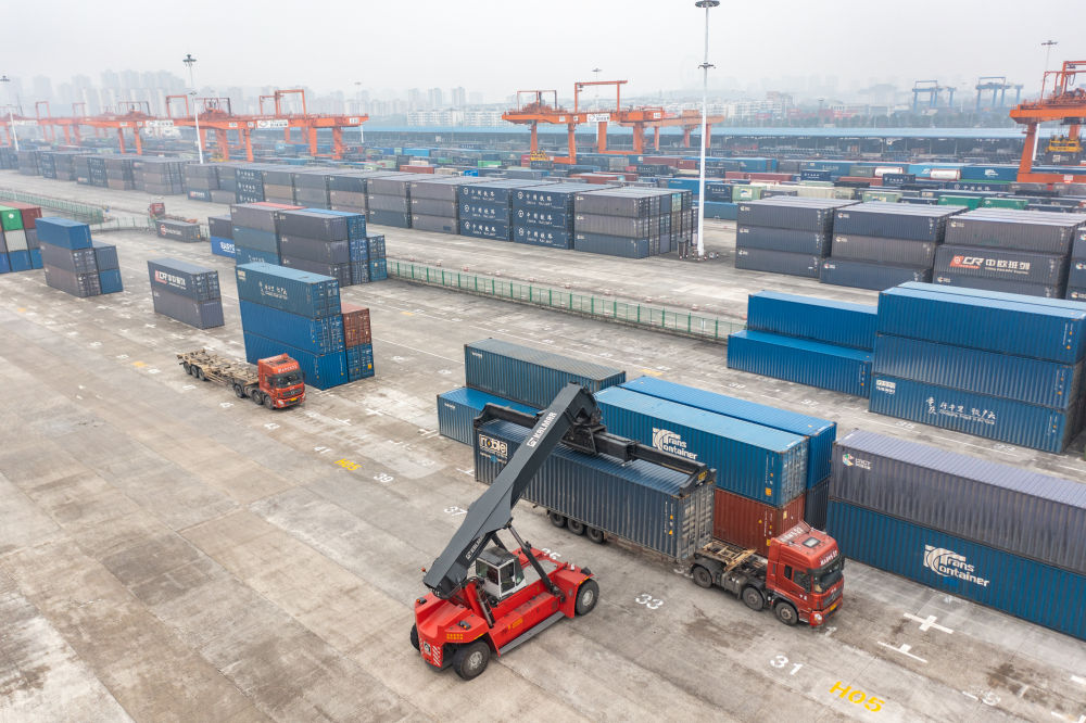 今天的重慶團結村中心站,印有“中歐班列”字樣的集裝箱堆積如山,橙色龍門吊起降不停,轉運貨車來往穿梭,擁有員工及裝卸工600余人,年辦理量達70萬標準集裝箱。