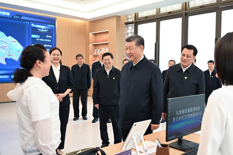2024年4月22日,習近平總書記來到重慶九龍坡區(qū)謝家灣街道民主村社區(qū),察看小區(qū)改造和便民服務(wù)情況,聽取提升基層治理效能、為基層減負情況介紹。