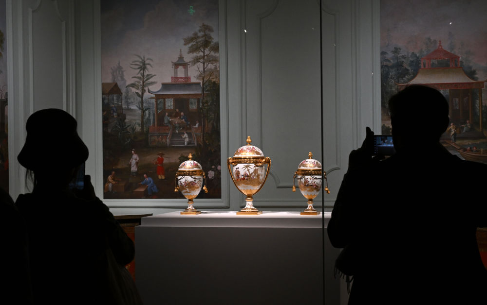 2024年4月1日,觀眾在北京故宮參觀“紫禁城與凡爾賽宮——17、18世紀的中法交往”展覽?! ⌒氯A社記者 金良快 攝