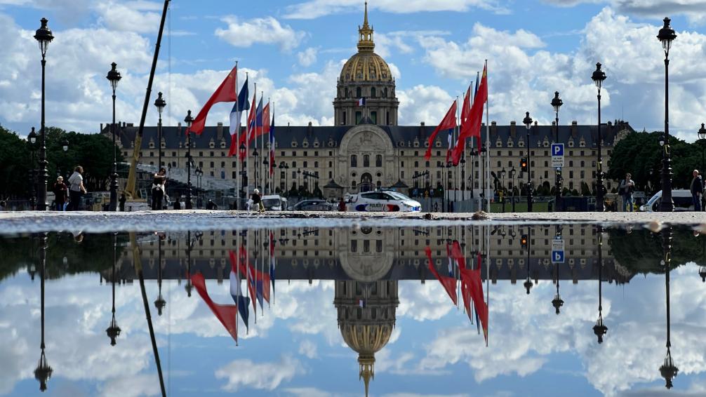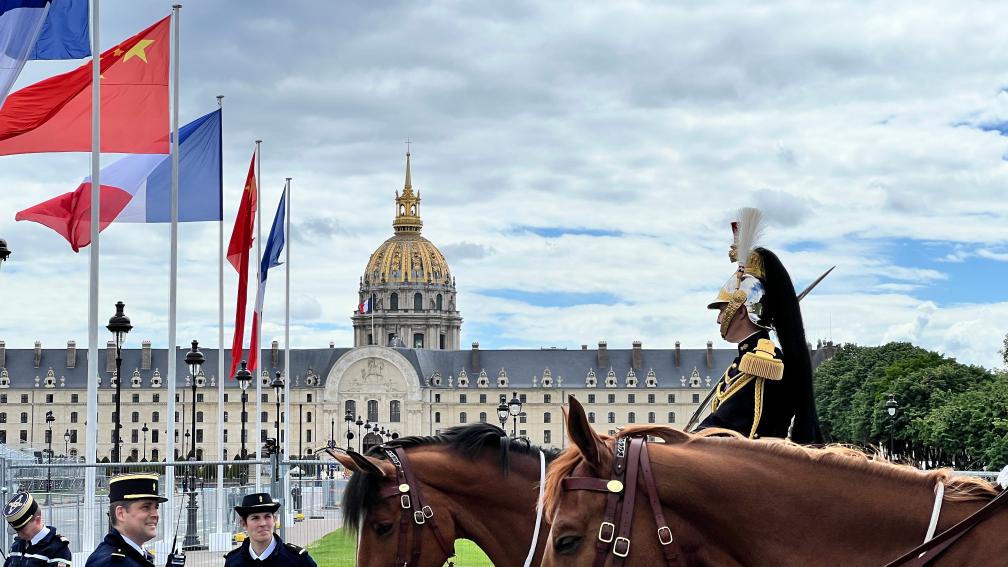 五月的巴黎,風(fēng)和景明。塞納河畔,榮軍院金色穹頂熠熠生輝,五星紅旗和藍白紅三色旗迎風(fēng)飄揚。