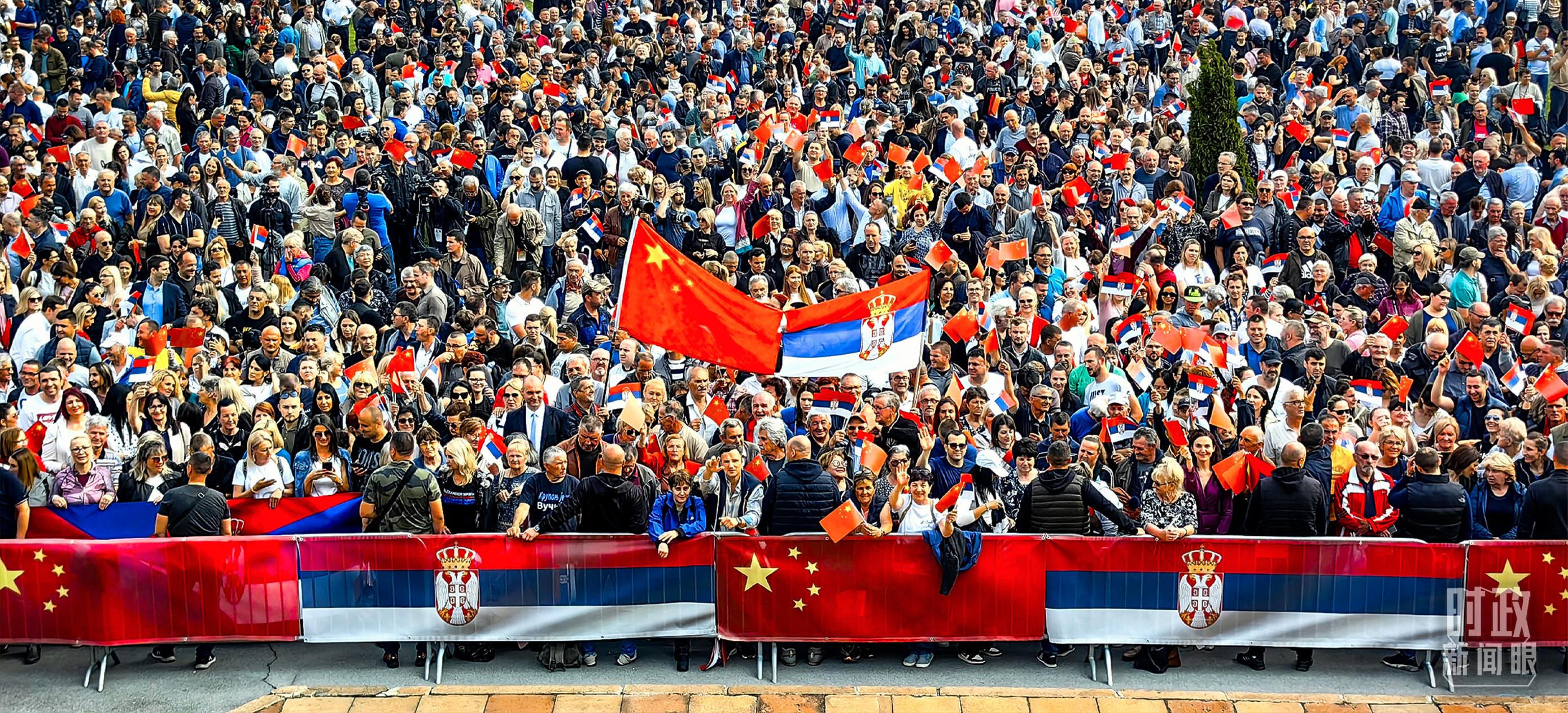 一萬五千名塞爾維亞民眾齊聚塞爾維亞大廈廣場,熱烈歡迎習主席到訪。(總臺央視記者段德文拍攝)