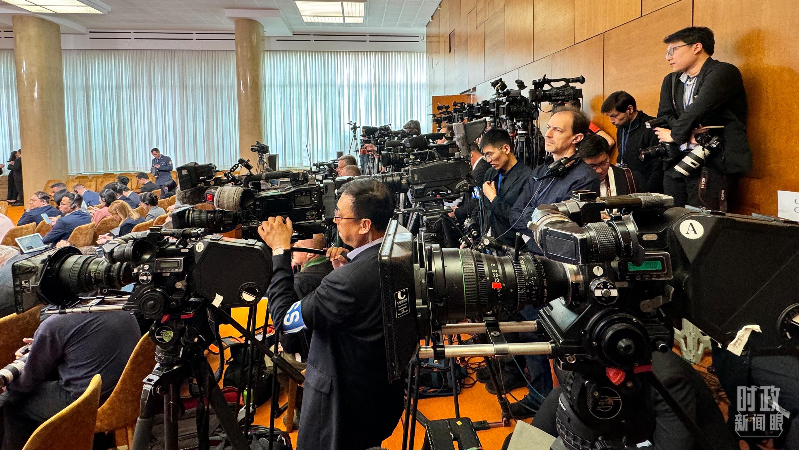 這是中塞兩國元首共見記者開始前的現(xiàn)場,記者云集。(總臺央視記者李增仁拍攝)