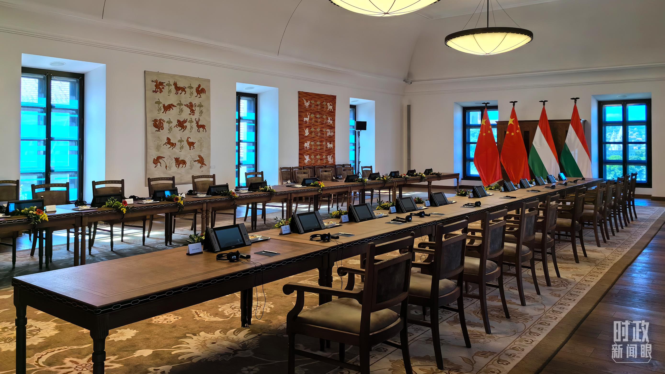 5月9日,習主席同匈牙利總理歐爾班在這里舉行會談。這是會談開始前的現(xiàn)場。(總臺央視記者陸泓宇拍攝)