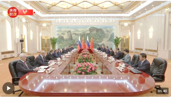 普京說:“尊敬的習近平主席,我親愛的老朋友,非常高興時隔半年再次來到友好、好客的中國并同您會面。俄中關(guān)系不是權(quán)宜之計,不針對第三方,我們在國際事務(wù)中的合作,是當今國際舞臺的主要穩(wěn)定因素之一?!?/p>