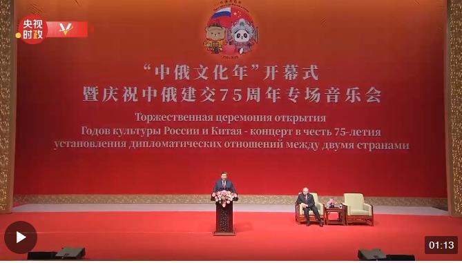 5月16日下午,國家主席習(xí)近平和俄羅斯總統(tǒng)普京在北京國家大劇院共同出席“中俄文化年”開幕式暨慶祝中俄建交75周年專場音樂會并致辭。