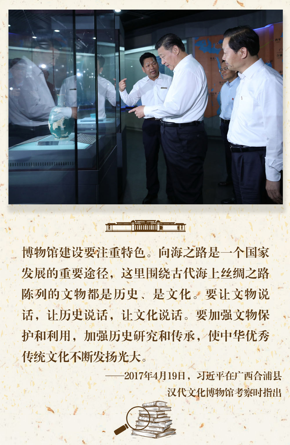 “一個(gè)博物館就是一所大學(xué)?!薄iL(zhǎng)期以來(lái),習(xí)近平總書記十分關(guān)心博物館事業(yè)發(fā)展,多次在不同場(chǎng)合對(duì)發(fā)揮好博物館相關(guān)功能提出要求。