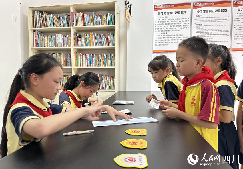 5月31日,南充市嘉陵區(qū)之江小學(xué)“美習(xí)銀行”,學(xué)生們在儲(chǔ)存“美習(xí)幣”。人民網(wǎng)記者 王波攝